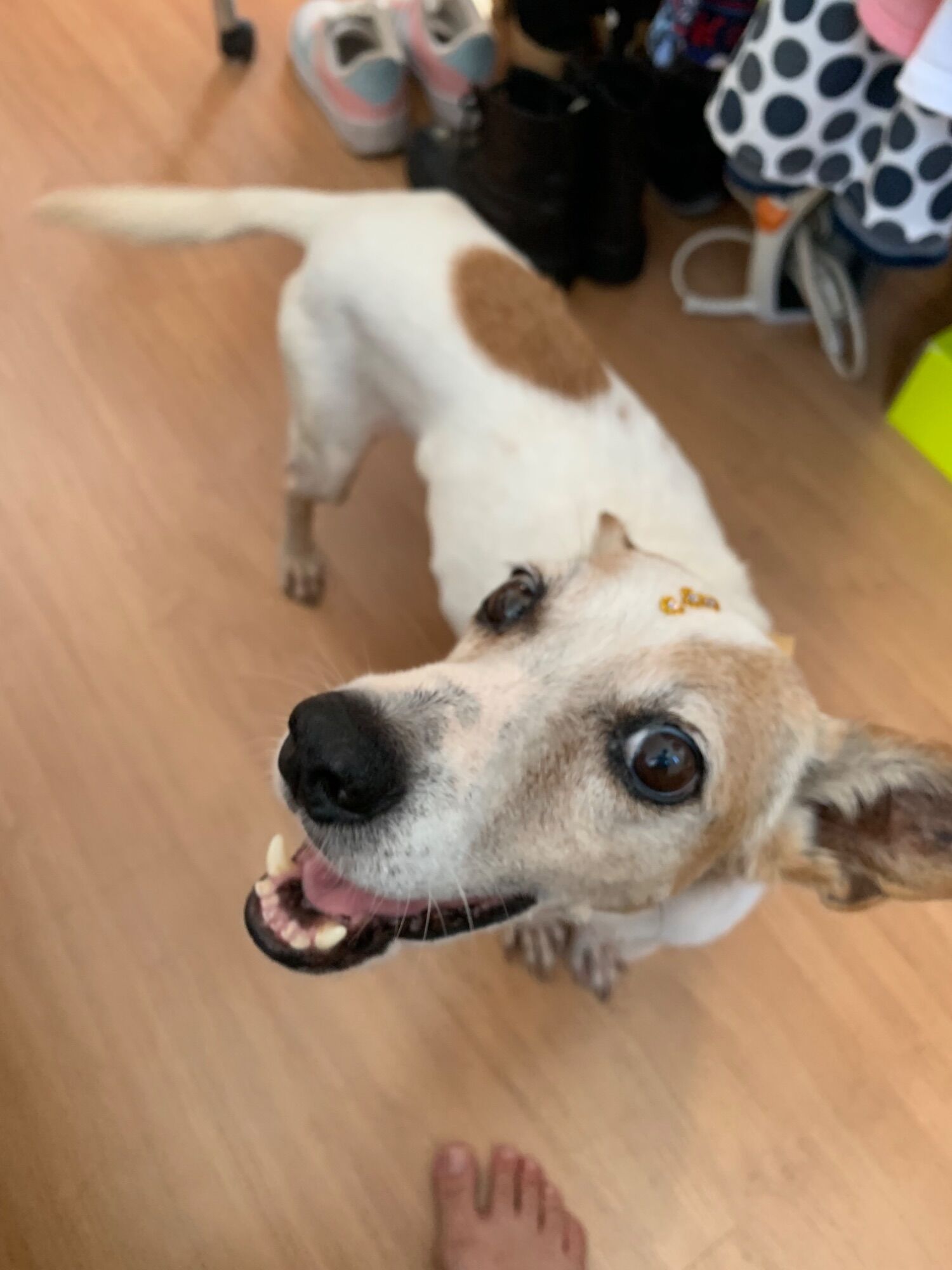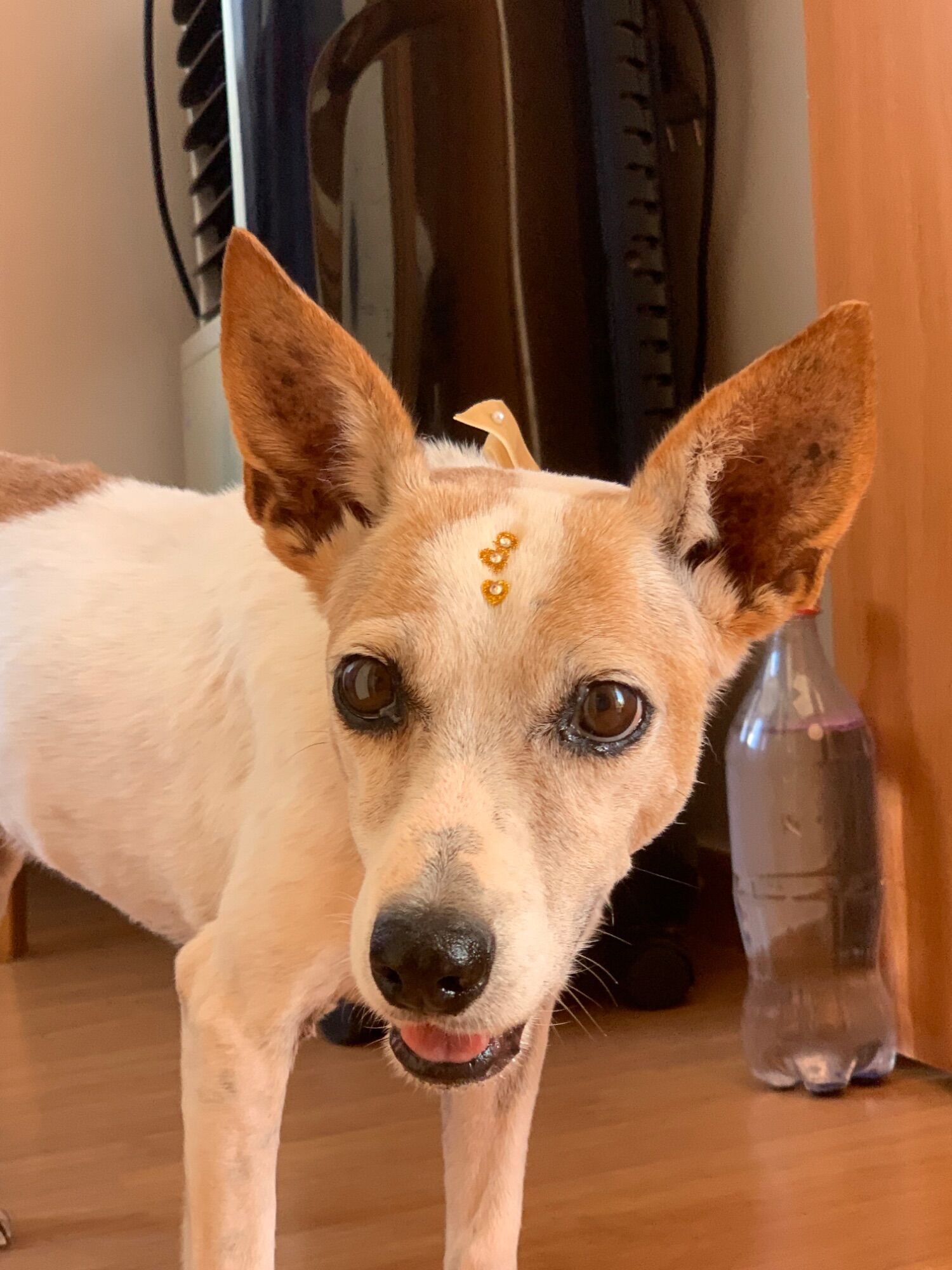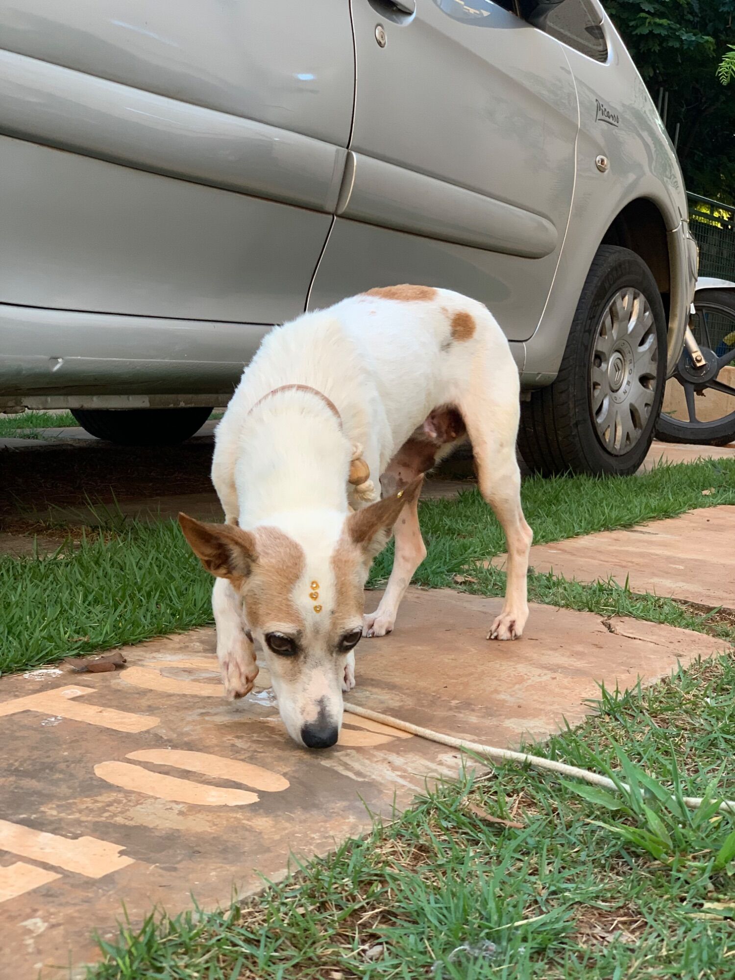 Essa cachorra apareceu dia 25/12 de baixo do meu carro. Trouxe para casa dei remédio mas não posso ficar com ela, não tenho espaço nem condições